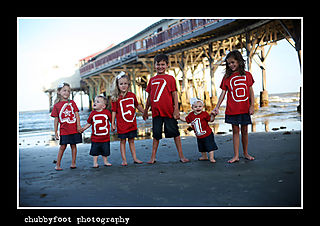 BEACH BUMS JUNE 25, 2008 this weekend we're taking the kids to Mexico for a week. SWEET! It will be a nice break from work, packing, swim team, etc.. until I leave, I thought I'd share some favorite Galveston pics for you to see how much fun we all had. Also, I'll be taking a few appts in Galveston again JULY 10th and 11th in the early evening. ($400 for 30 minute session) - email quickly for openings! so first up is the stevenson grandkids, which you should recognize by now! The kids are getting older and it's getting a bit easier =) To be clear, they've always been gorgeous, but you should see all of our clown antics to get this crew to smile! keeping with the theme of the large groups, here's the hanks clan, another chubbyfoot regular. they added the grandparents for this shoot, so that was an added bonus! I loved shooting under the piers for an added textural element. I think a few moms were unsure, but in the end they loved them - this was the first time I met the madsens, and they brought out the whole crew! Of course, we spent quite a bit of "film" on the newest members =) the newlyweds...doing what they do best! and one final favorite ok - many more to come! thanks for looking