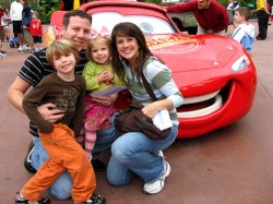 we're back! Disney was fabulous. Everything I'd hoped for and more. Almost more endearing than 6 days in a magical place was the wonderfullness of being together as a family. just the 4 of us having an adventure. No wi-fi, no mommy-friends to distract me.. it was all about us and that rocked. of COURSE I have photos, and I'll post more later, but here's a couple of favorites - I admit it.. I bought my first point and shoot camera/ video cam for the trip. weighs 5 oz I think and takes pretty bad pictures over all =) but I was bound and determined to be mommy first and photographer 2nd this trip.. after seeing all the pics I was having 2nd thoughts about doing that again!? It was nice to not lug the big kahuna around every day but this first pic is with the kiddie cam - (just so you don't think I've lost my touch!)