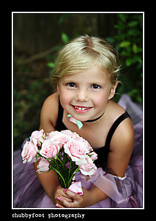 her feet in a perfect first position and her petite hands creating a sweet halo around her face.